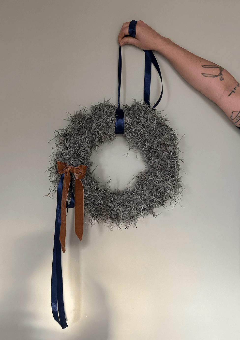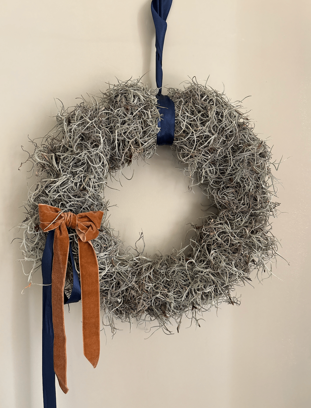 Not your average christmas wreath! Handmade with silvery spanish moss on a twisted willow frame. Ribbon colour is your choice! Price includes postage :)